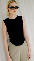 Combina elementos clásicos, como las costuras verticales que acentúan la cintura, con un diseño más contemporáneo, como el escote redondo y la falta de mangas. Esto lo hace versátil y adaptable a diferentes estilos.