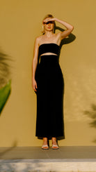 Pantalón de talle super alto con una estructura tipo corset que realza y define la cintura de manera sofisticada.
