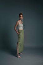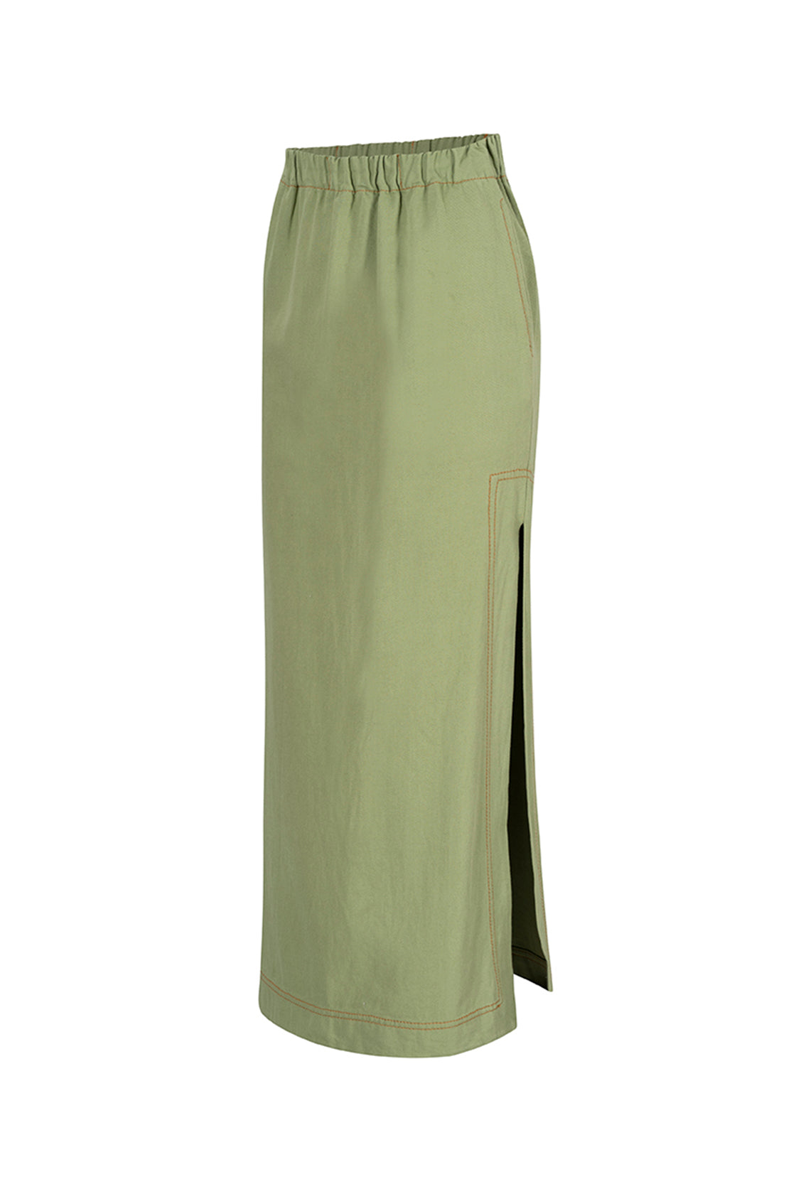 Añade un toque de encanto y funcionalidad a tu closet con nuestra falda en drill algodón 100%, estilo A con bolsillos prácticos, pretina de resorte y aperturas laterales que realzan tu estilo con comodidad.