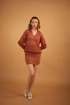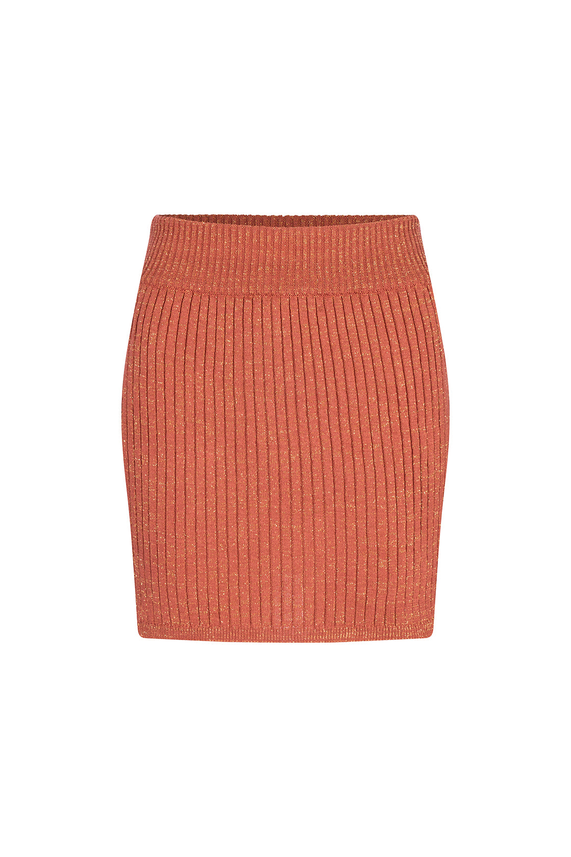 Mini falda en tejido de punto estilo rib con hilo lurex dorado