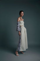 Despierta tu estilo bohemio con nuestro Pantalón Bota Campana en lino 100%, con un toque único proporcionado por un estampado digitalizado en los laterales. Este diseño vanguardista combina la frescura del lino con la sofisticación del arte estampado.